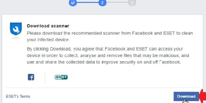 - Bước 2: Tiếp theo, nhấn nút Download để tải công cụ quét virus từ đối tác của Facebook là ESET.